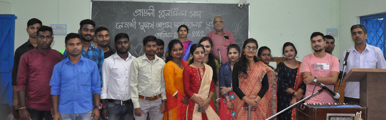 Netaji Subhas Ashram Mahavidyalaya, Suisa, Purulia , an education Institute with the mission, occupies a unique position in higher education of the state. It offers a range of degrees at under graduate level. The institute is the first to introduce chhou dance and mask making as add- on course sponsored by UGC. Aim of our institution which strives distinctly dynamic and socially and socially responsible is to manifest perfection in the student. Read More..